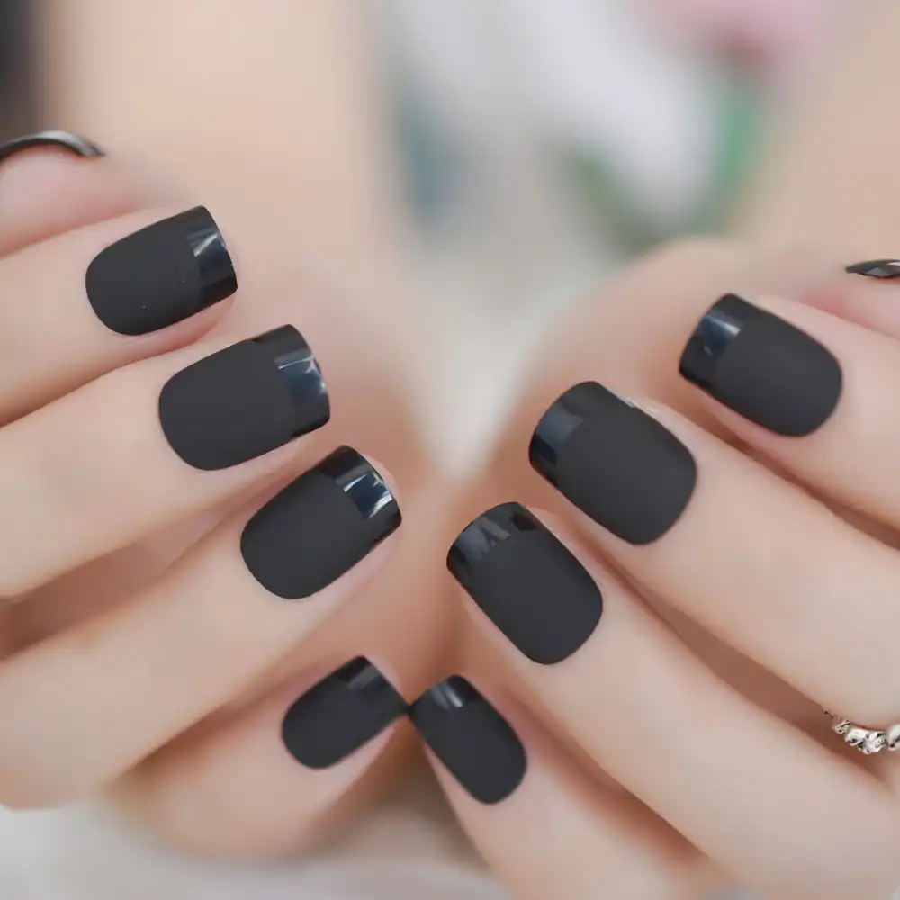 But sometimes we need something different. Beautiful nails 2018, fall nails with rhinestones, matte nails with glossy pattern, nails with shiny dust, novelty of fall nails, october nails, summer colors for nails, two color nails. Have you ever wondered about. Matte black looks beautiful when combined with other nail art. Matte nails are trending now and black matte nail designs are awesome. But why should you opt for black, you may wonder? Great way to stick with a monochromatic aesthetic by just adding a glossy finish to the tips of nails to play off of the matte black finish. They always look so good with everything and it looks so clean. Magical, meaningful items you can't find anywhere else. Glossy black nail design looks fancy and super sleek. Our next idea is a great example of this. We've found some of the most incredible matte black manicures you're going to fall in love with. This polish is good if you want to wear black but want to avoid its stark look.